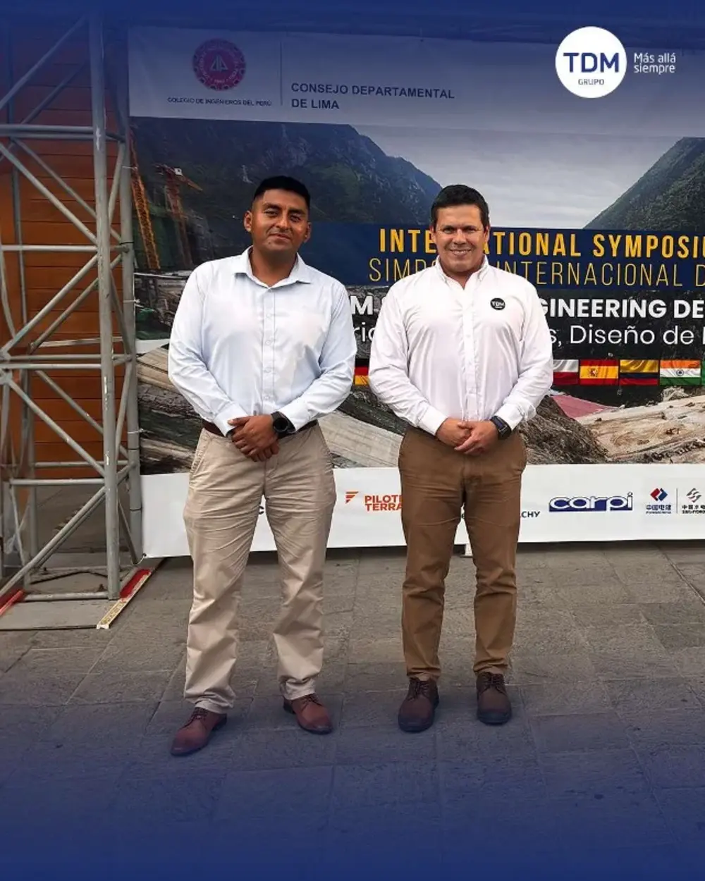 En representación de Grupo TDM participaron César Oviedo, Rainer Lagos y Yordy Villavicencio Quispe, quienes compartieron conocimientos y la experiencia desarrollada por la empresa a lo largo de más de 30 años en soluciones con geosintéticos para proyectos hidráulicos.